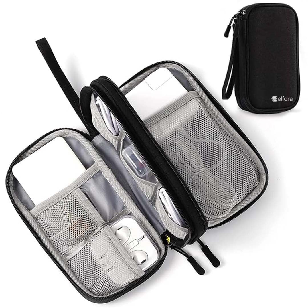 Double Layer Storage for Maximum Organization – The Elfora Compact Cable Organizer Bag features a spacious dual layer design, providing dedicated compartments for cables, chargers, AirPods, power banks and other electronic accessories, keeping everything neatly arranged. Durable & Water Resistant Nylon Material – Crafted from high quality nylon fabric, this travel case is water resistant, dustproof and built to withstand daily wear and tear, ensuring long-lasting protection for your valuable tech gear. Secure Mesh Pockets & Elastic Straps – Designed with multiple mesh pockets and elastic loops, this organizer keeps your accessories securely in place, preventing tangling and making it easy to access your items when needed. Portable & Travel Friendly Design – Lightweight and compact, this cable organizer fits perfectly in backpacks, suitcases or handbags, making it an ideal companion for travelers, professionals and tech enthusiasts on the go. Stylish & Functional with Easy Carry Handle – The sleek blue design adds a modern touch, while the convenient wrist strap provides easy portability, allowing you to carry your essential gadgets effortlessly wherever you go.