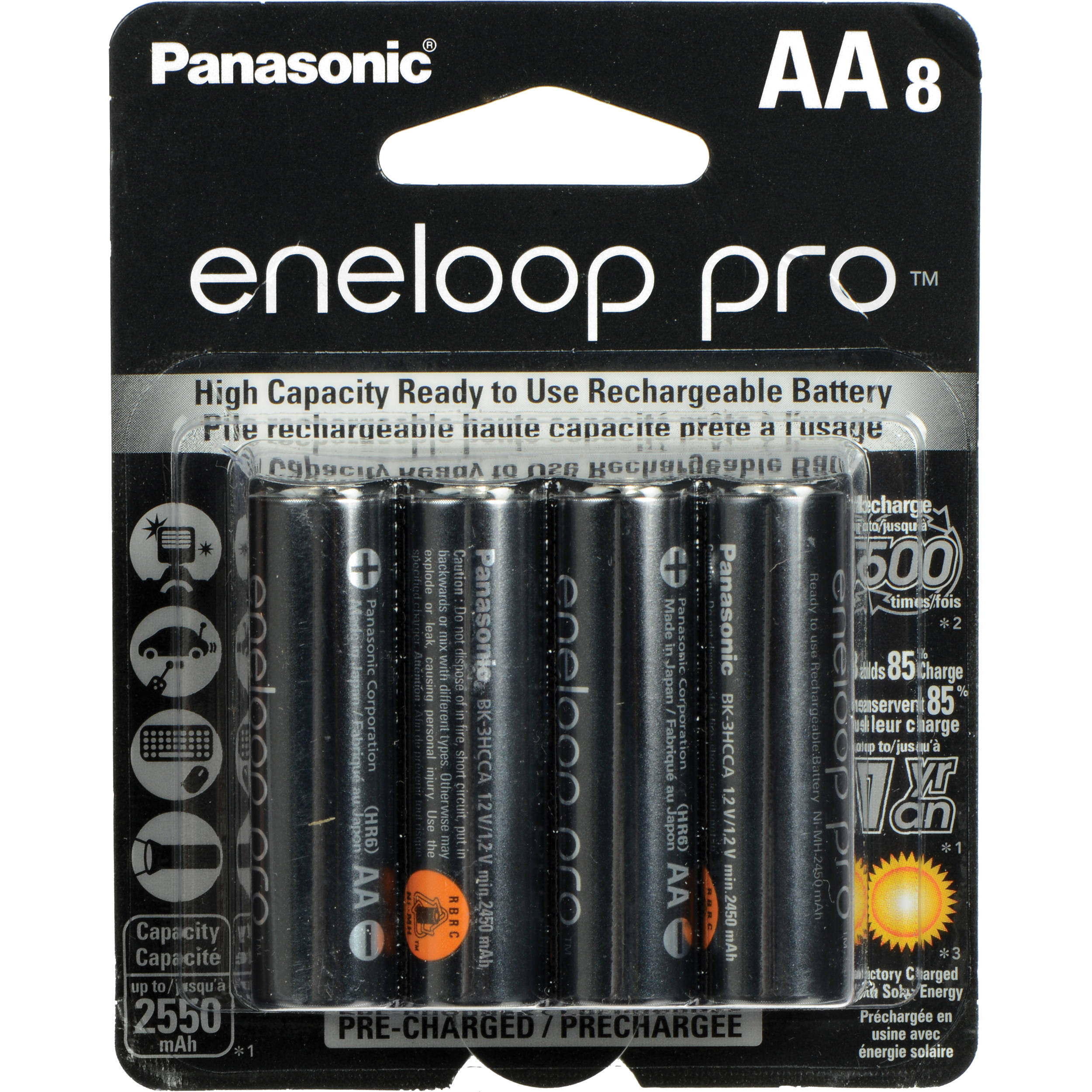 The Panasonic eneloop pro AA Rechargeable NiMH Batteries deliver long-lasting, reliable power for high-drain devices such as digital cameras, gaming controllers, flashlights, and wireless accessories. With a 2550mAh capacity and a 1.2V output, these batteries ensure extended runtime, making them ideal for professionals and everyday users alike.Powerful, Long-Lasting, and Eco-Friendly High Capacity (2550mAh, 3.06Wh) – Delivers extended power for energy-intensive electronics. Rechargeable up to 500 Times – Reduces waste and saves money compared to disposable batteries. Pre-Charged & Ready to Use – Convenient and eco-friendly power straight out of the pack. Advanced Technology for Maximum Performance Low Self-Discha